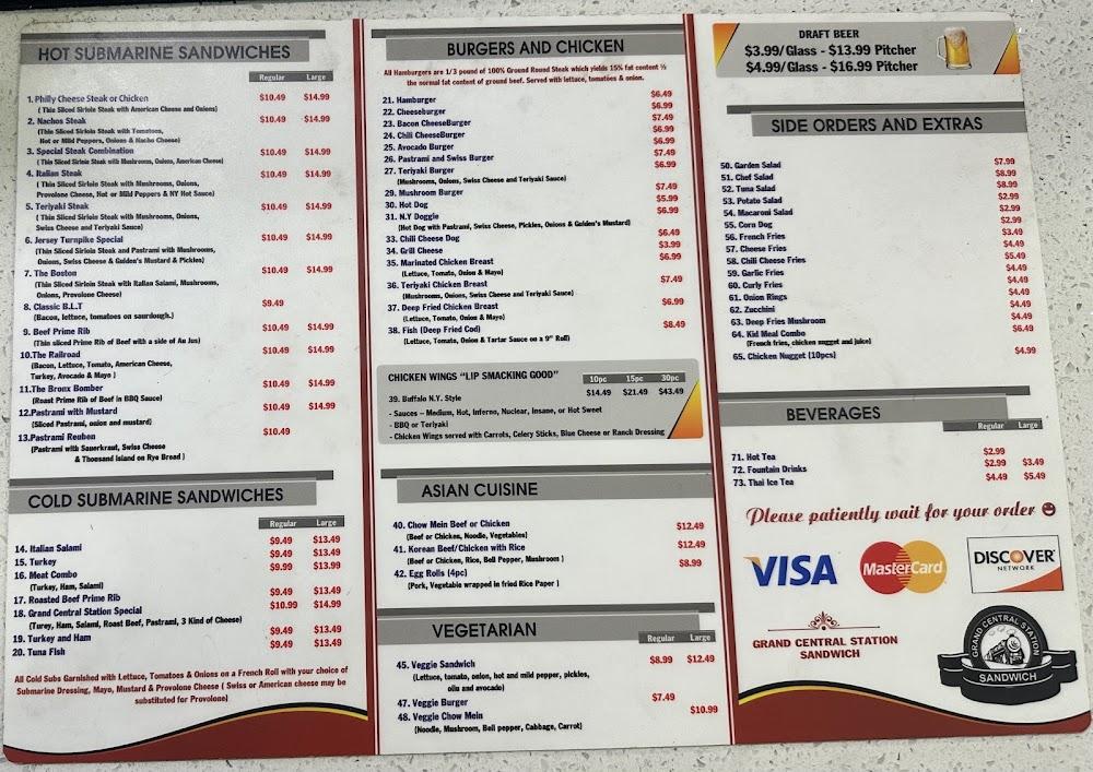 The menu at Grand Central Station Sandwich mixes flavors from various cultures, creating a delightful selection. Traditional American sandwiches take center stage, but Asian influences add excitement. Signature items include the Philly cheesesteak and the Grand Central Special, which both highlight a commitment to quality. Customers also enjoy classic chicken wings and veggie-filled options for lighter tastes. Each dish reflects the dedication to using fresh ingredients.
